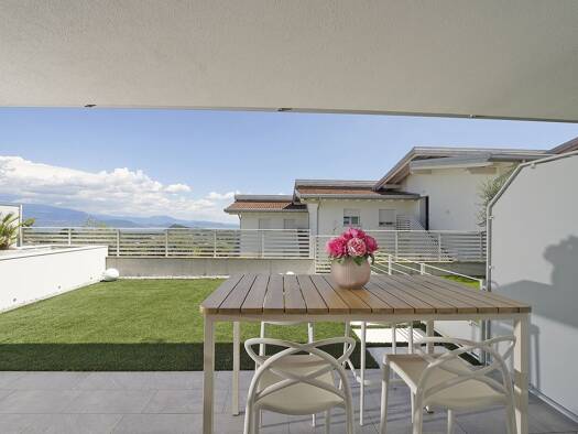 Referenz: MS-003-160 Neu gebaute, komplett möblierte und fertiggestellte Doppelhaushälfte mit Seeblick in Polpenazze del Garda! Das Anwesen erstreckt sich über zwei Ebenen plus Keller. Um die Sonne u...
