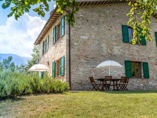 Phantastische Panoramalage: Komplett renoviertes Haus mit beheiztem Pool und privatem Bachlauf am Fuße der Sibillinischen Berge. Das Landhaus wurde 2016 fachmännisch und sehr hochwertig renoviert und...