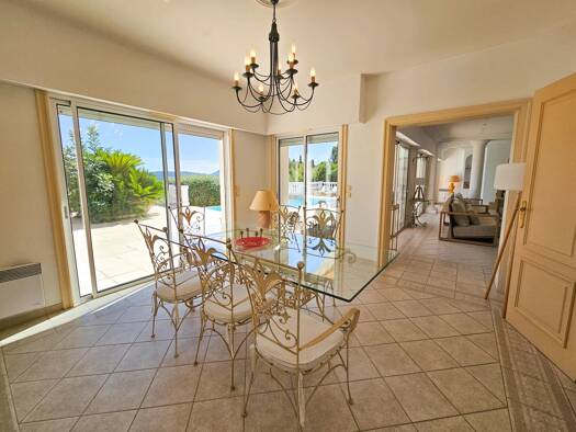 This spacious 290 m2 villa with a swimming pool offers a panoramic view of the Bay of Cannes. The villa is built on a 2,894 m2 plot on the hill of Mandelieu la Napoule, known for its natural setting ...