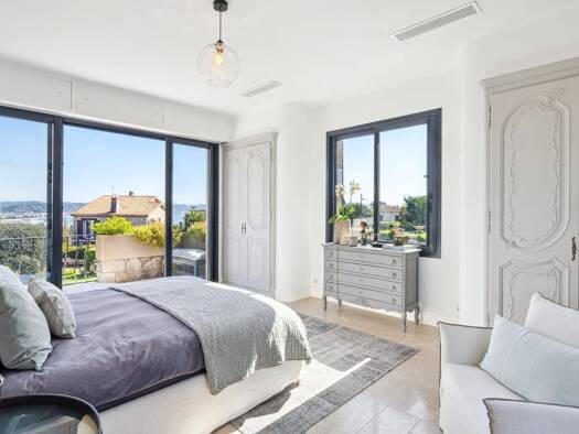Out of sight and in a dominant position, at the end of a cul-de-sac in a very residential area, this recently renovated family property par excellence offers sea views over Cannes, the Lerins islands...