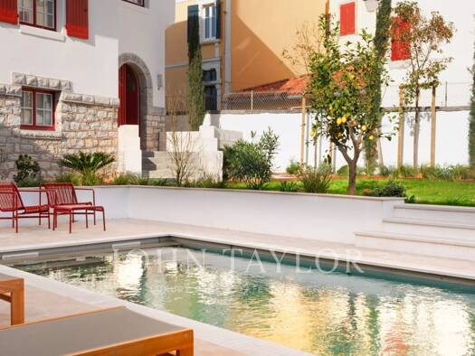 Idéalement située à quelques pas des plages et d'un golf renommé, cette villa entièrement rénovée offre une interprétation contemporaine et élégante de l'architecture basque. Développant environ 400 ...