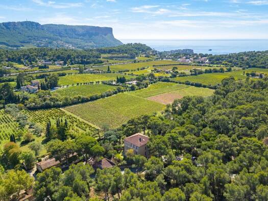 Bastide in Cassis with sea view in the heart of the vineyards. In the peace and quiet of the Janots countryside, Mas cassidain nestling in a 5059m2 property with swimming pool. In the distance, the s...