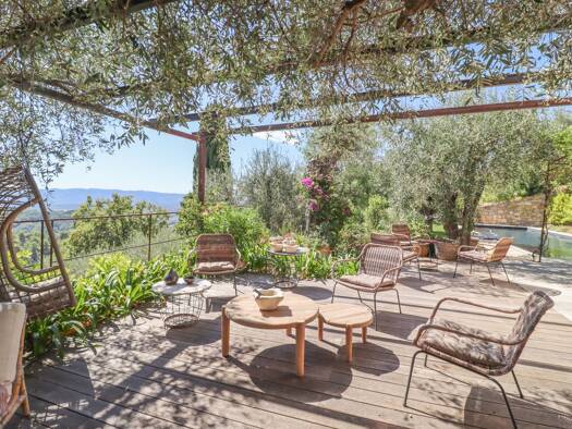 In einer privilegierten Lage dominiert dieses prächtige Herrenhaus mit Gästehaus das Tal und bietet einen atemberaubenden Panoramablick, der sich von den Estérel-Bergen bis zum Meer erstreckt. Elegan...