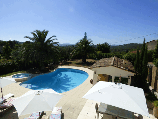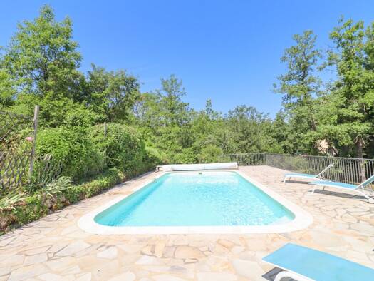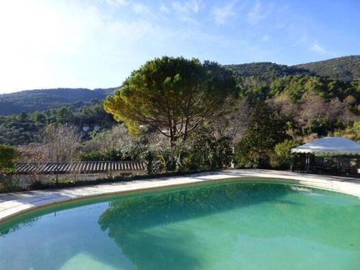 Family sized villa set on a hillside on 4,993m2 of landscaped grounds boasting beautiful views, with delightful pool area. Inside, large living room, 3 bedrooms + separate studio, swimming pool, gara...