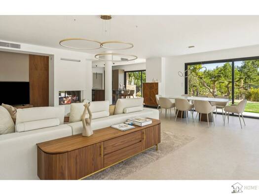 Set in a commanding position, this exquisite contemporary residence boasts spectacular panoramic views extending all the way to the sea. Flooded with natural light, it offers a grand living room open...