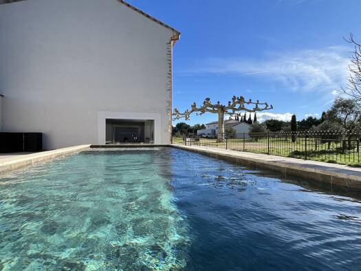 In Fontaine-de-Vaucluse, at the foot of the cliffs and just steps from the Sorgue river, this 17th-century stone bastide underwent a full renovation between 2020 and 2021. The result is an elegant pr...