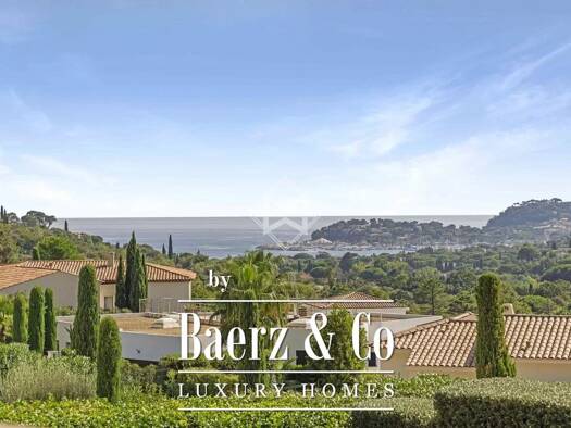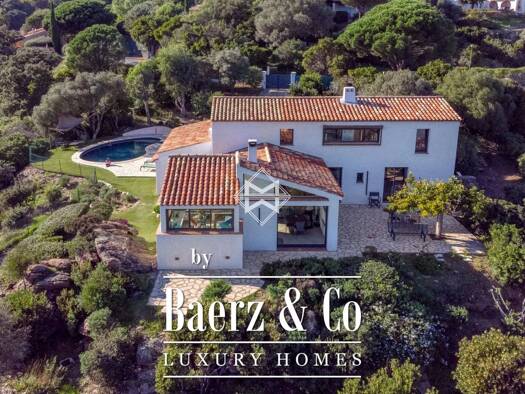 sole agent - situated on a natural rocky promontory surrounded by a protected area, this charming villa offers a magnificent view of the bay of cavalaire and gigaro. its remarkable location, combinin...