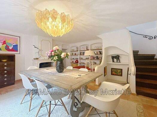 Immobilie im Herzen eines privaten Anwesens nahe dem Dorfzentrum von Grimaud, verteilt auf drei Ebenen. Im Gartengeschoss bieten ein großes Wohnzimmer, ein Essbereich mit Kamin und eine offene Küche ...