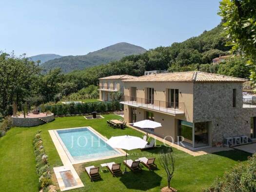 In Tourrettes sur Loup, mit herrlichem Blick auf das Meer und die umliegende Landschaft, befindet sich dieses schöne, neu erbaute Anwesen mit einer Wohnfläche von 320 m² auf einem 4000 m² großen Grun...