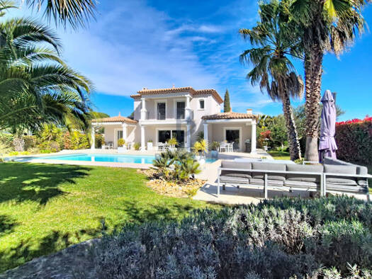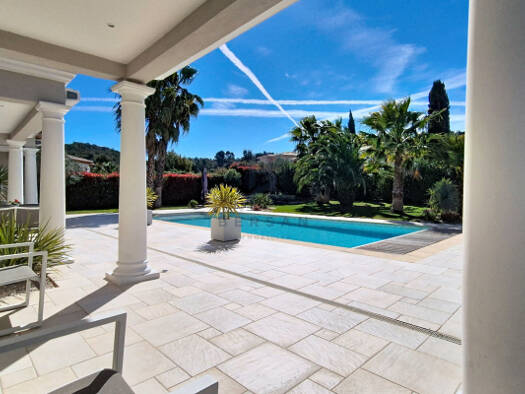 Niché au cour d'un domaine privé et sécurisé, au calme absolu, ce bien rare bénéficie d'une position dominante et d'un superbe terrain paysager de 1 900 m². Cette élégante villa climatisée, de 7 pièc...