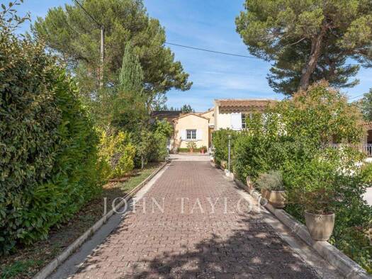 A 300-m² Provencal country house, with a swimming pool and enclosed, tree-filled grounds of nearly 2,000 m², less than thirty minutes from the train station and airport, on the outskirts of Aix-en-Pr...