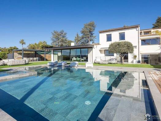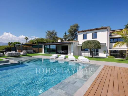In einem der begehrtesten Gebiete der Côte d'Azur, in absoluter Ruhe und wie auf einem Hügel gelegen, bietet diese 2024 komplett neu gebaute Villa von fast 400 m² mit großem Pool und Jacuzzi in Südwe...