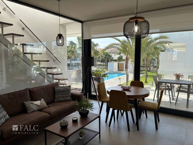 Willkommen in Ihrem Refugium am Mar Menor! Diese im Jahr 2021 fertiggestellte Maisonette-Wohnung besticht durch ihre moderne Architektur und einen Zustand, der als absolut neuwertig bezeichnet werden...