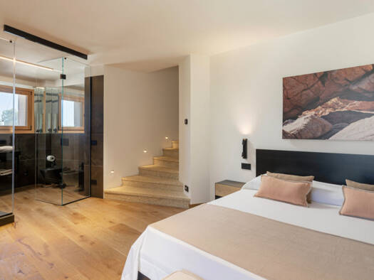 Eingebettet in die ruhigen Hügel von Baja Sardinia, in der begehrten Gegend von La Silvaredda, verkörpert diese elegante Villa den zeitlosen mediterranen Stil und gehobenen Wohnkomfort. Mit hochwerti...