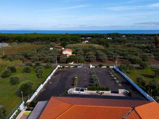 Die Villa Bianca ist über eine asphaltierte Gemeindestraße erreichbar, die zum Grundstückseingang führt. Eine elegante, von Bäumen gesäumte Allee führt zum oberen Teil des Anwesens, wo die Gebäude in...