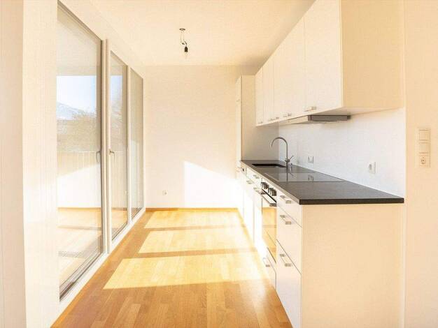 Modern wohnen am Kummenberg - geräumige 2-Zimmer-Wohnung mit 64 m² Wohnfläche - überdachte Terrasse mit Blick ins Grüne - Erdwärmepumpe und Photovoltaikanlage - großzügige Fensterflächen mit 3-fach-V...