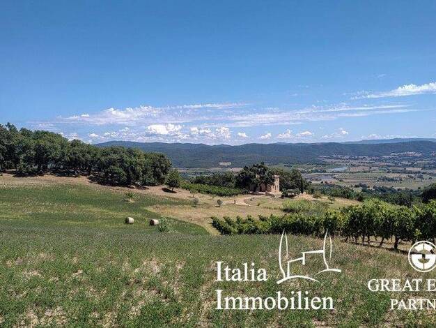 Stellen Sie sich vor, Sie stehen auf einem wunderschönen Hügel in der toskanischen Landschaft, umgeben von der unberührten Schönheit der Natur. Dieses Grundstück bietet Ihnen nicht nur Privatsphäre u...