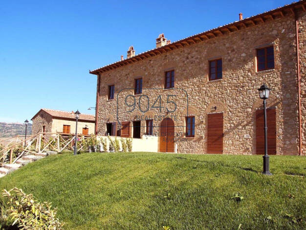 Fein restauriertes Bauernhaus aus Stein, eingebettet in die toskanische Landschaft, mit 7,5 Hektar Land, Olivenhain, Panoramaterrasse und edlen Materialien ausgestattet. Im Herzen der toskanischen La...