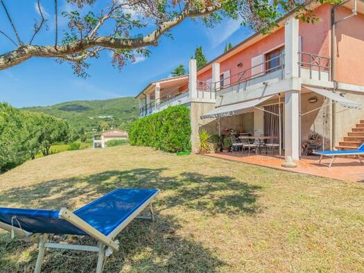 Großzügige Villa in hervorragendem Zustand mit Westausrichtung und privaten Zugang zum Meer! Blick auf Korsika! Die Villa bietet eine schöne Raumaufteilung und kann so als Privathaus für die große Fa...