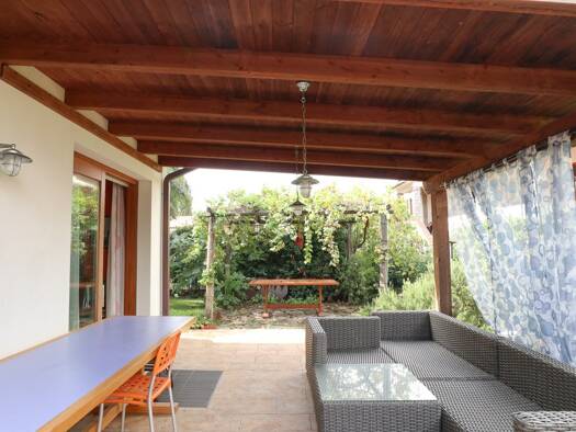 Die Doppelhaushälfte befindet sich in einer ruhigen, grünen Gegend in Lacona, etwa 250 Meter vom Strand Margidore entfernt. Das ebenerdige, nach drei Seiten offene Grundstück genießt eine hervorragen...