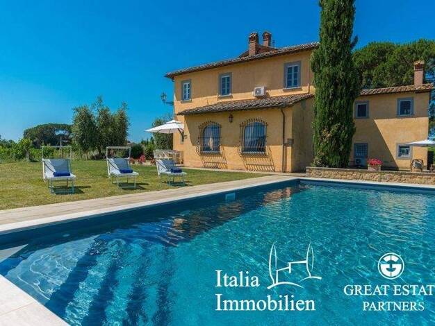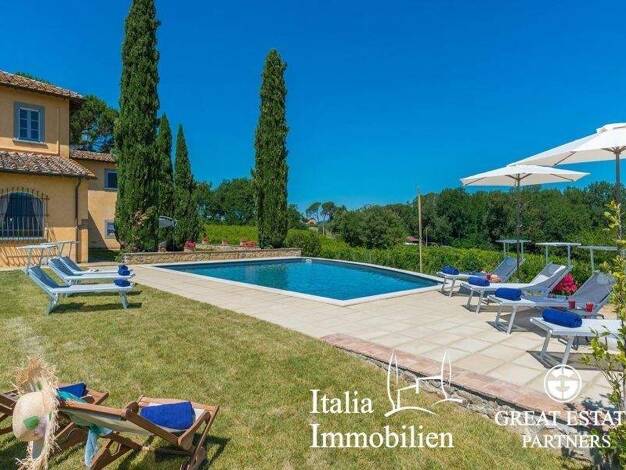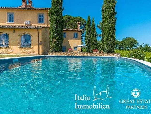 Historische Villa mit Swimmingpool zu verkaufen in der Nähe von Arezzo. Komplett restaurierte alte Villa mit beheiztem Swimmingpool, Gästehaus und zweigeschossigem Nebengebäude als Lagerhaus, mit ein...
