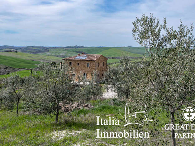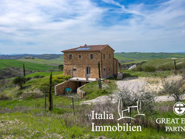 Prächtige Leopold-Villa auf einem Hügel mit unverbauter Aussicht, eingebettet in die außergewöhnliche Landschaft des Val d'Orcia. Das Haus, dessen ursprüngliche Struktur auf das 16. Jahrhundert zurüc...