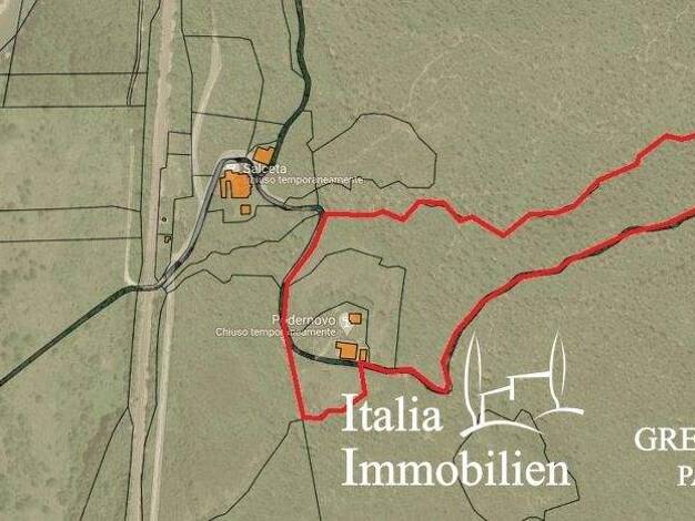 Haupteigenschaften Ort: Brunello di Montalcino, Toskana Gesamtfläche: 104,43 ha Flächenverteilung: 75 ha Ackerland für Getreide 11,81 ha hochgewachsener Wald 1,85 ha Olivenhaine in Produktion 7,49 ha...
