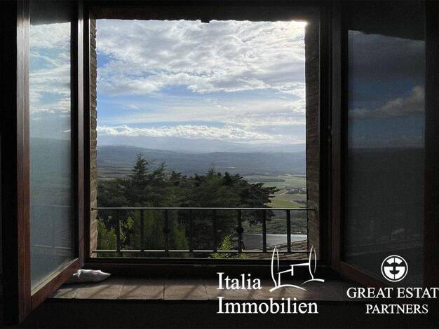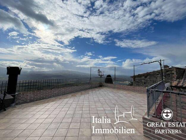 Im Produktionsgebiet des Brunello gelegen, mit einem atemberaubenden Blick auf die umliegenden Weinberge, hat dieses herrliche Anwesen eine Fläche von etwa 1.000 Quadratmetern. Ein großer Garten umgi...