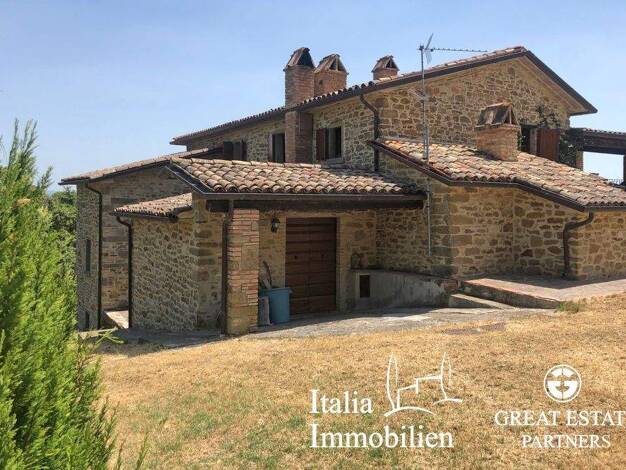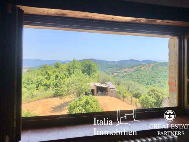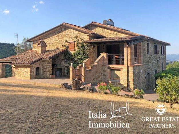 Charmantes Bauernhaus aus Stein von 222 qm, in einer herrlichen Panoramalage, mit einem Nebengebäude von 106 qm, Swimmingpool 4x8 m, 4 Schlafzimmer, 2 Bäder und 1,6 ha Land in Città di Castello, Peru...