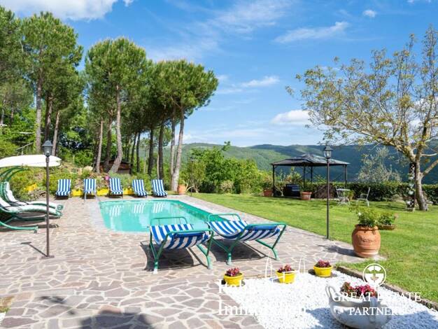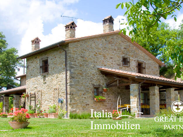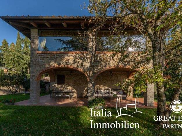 Mitten im Valdichiana, mit einem herrlichen Blick auf Arezzo, liegt dieses wunderschöne Steinhaus, das komplett renoviert wurde und über einen Tennisplatz und einen Park verfügt. Dieses schöne Steinh...