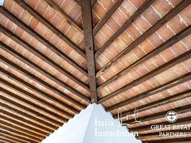 freistehende Villa umgeben von der typischen toskanischen Landschaft. Wenn man den Garten durchquert, erreicht man den Säulengang, der ins Innere des Hauses führt. des Hauses, sowohl die Wohnküche al...