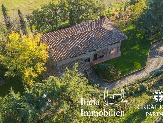 Wunderschöne Villa auf zwei Ebenen, mit dreifacher Garage und Nebengebäude und 28700 Quadratmetern Parkland in Arezzo, ganz in der Nähe von allen Dienstleistungen und mit der Möglichkeit für den Ausb...
