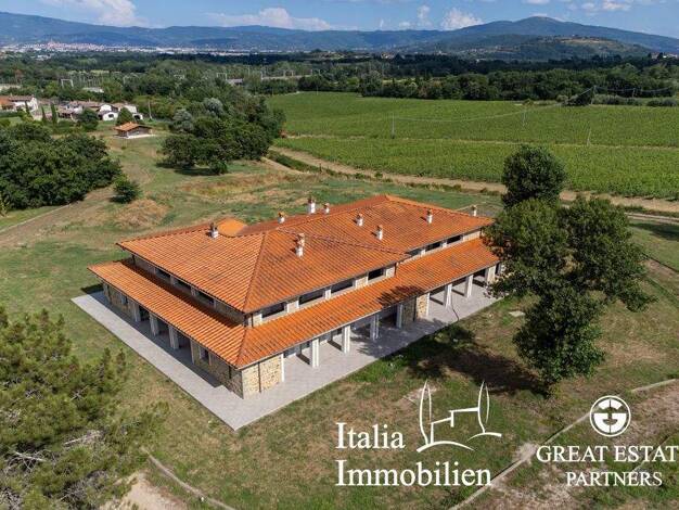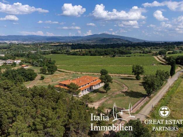 In einer hügeligen und panoramischen Gegend, etwa zwei km vom Zentrum der Stadt Arezzo, bieten wir Ihnen diese fantastische Villa mit 600 Quadratmetern an. Sie ist umgeben von 5000 Quadratmetern Park...