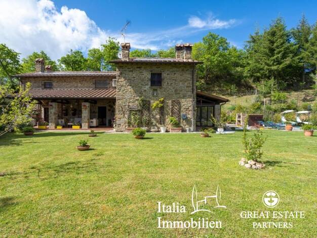 Energieausweis: ZU DIESER IMMOBILIE LIEGT DERZEIT NOCH KEIN ENERGIEAUSWEIS VOR. IN VORBEREITUNG. Wir bieten dieses außergewöhnliche Steinhaus in Toskana, Provinz Arezzo, mit privatem Wald, Garten und...