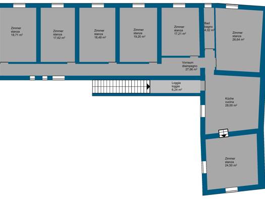 Hauptmerkmale: Gesamtfläche ca. 2.405 m² (102 Zimmer) 43 Schlafzimmer und 50 Badezimmer 180 Hektar landwirtschaftliches Gut (Chianti Classico Weingüter und Olivenhaine) Historischer Komplex: Villa au...