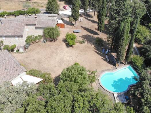 Objektbeschreibung Dieses schöne Landhaus befindet sich im Chianti-Gebiet von Siena, umgeben von 25 ha Land mit Wäldern, Weiden und einem kleinen Olivenhain. Das Anwesen besteht aus 2 Gebäuden. Rauma...