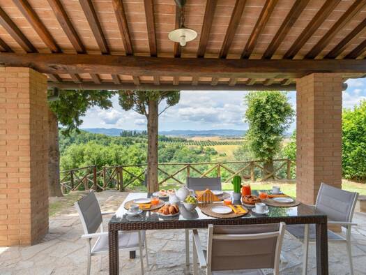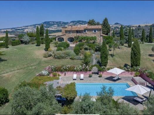 Objektbeschreibung Herrliche elegant renovierte Villa in der Nähe von Volterra in superber Panoramalage. Rund um das Gebäude gibt es 9 ha Land mit schönen Olivenbäumen und einen großen Pool. Raumauft...