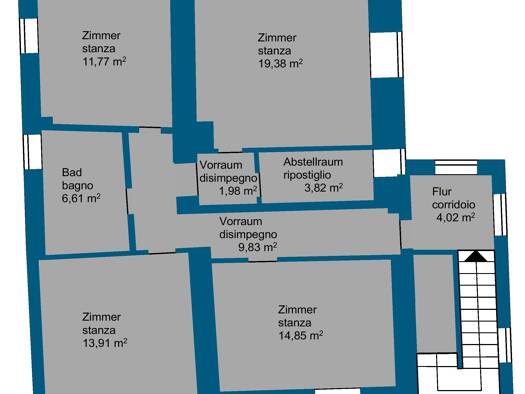In der kleinen aus nur 7 Parteien bestehenden Wohnanlage aus dem 1800 Jahrhundert befindet sich die Wohnung im 3. Stock (Dachgeschoss). Ein freundlicher Eingangsbereich von dem auf zwei Seiten die Rä...