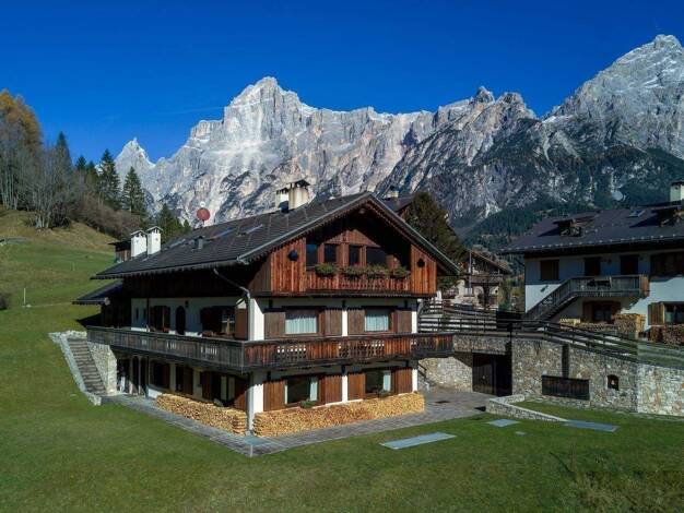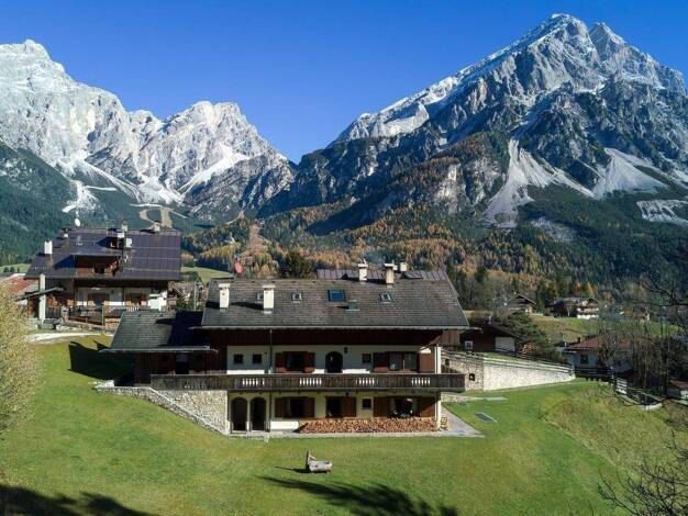 Erdgeschosswohnung in Cortina mit freiem und beeindruckendem Blick auf die Berge Pomagagnon, Cristallo und Faloria, deren Farben sich im Laufe des Tages verändern. Hell und einladend, mit einem großz...