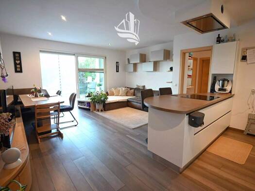 U5: Diese moderne 3-Zimmer-Wohnung im 1. Stock bietet hohen Wohnkomfort in einer ruhigen Umgebung. Der offene Wohnbereich mit integrierter Küche öffnet sich zu einem sonnigen Balkon, ideal, um den Ta...