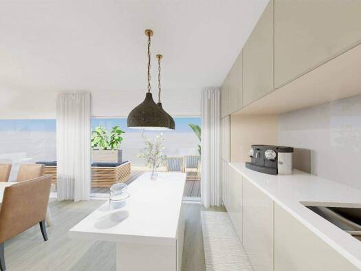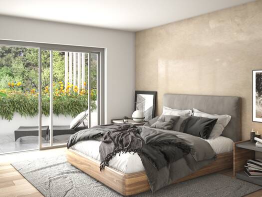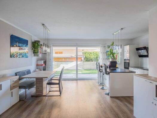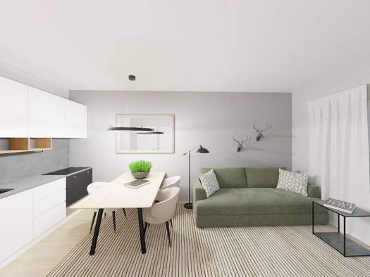 U5: Diese moderne 3-Zimmer-Wohnung im 1. Stock bietet hohen Wohnkomfort in einer ruhigen Umgebung. Der offene Wohnbereich mit integrierter Küche öffnet sich zu einem sonnigen Balkon, ideal, um den Ta...