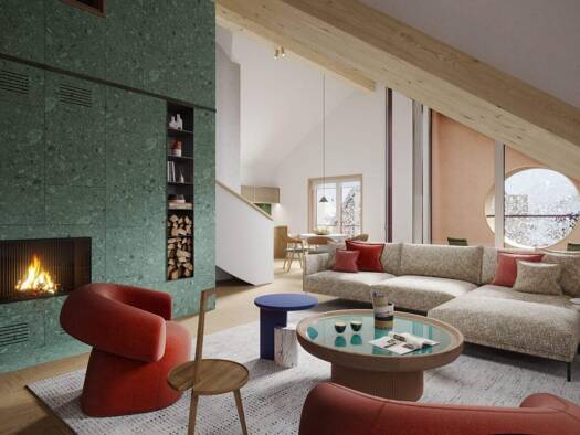 Inspiriert von alpiner Tradition. In der Schweiz hergestellt. Entdecken Sie dieses Duplex-Penthouse-Juwel mit 5 Schlafzimmern. Mit einer großen, offenen Küche, einem Esszimmer mit eleganten Holzmaser...