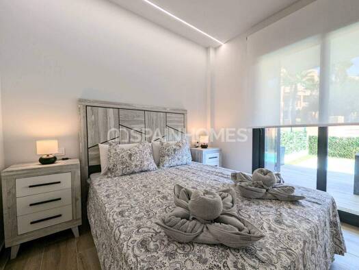 Wir präsentieren Ihnen diesen hellen und modernen Bungalow aus einem Neubauprojekt, das 2024 fertiggestellt wurde, gelegen im Erdgeschoss einer privaten Wohnanlage mit Gemeinschaftspool und Grünfläch...