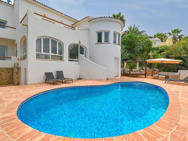 Meerblick, Sonnenschein und Stil in Denias friedlicher Hanglage Diese stilvolle mediterrane Villa liegt in einer der ruhigsten und begehrtesten Wohngegenden Denias und bietet eine seltene Mischung au...