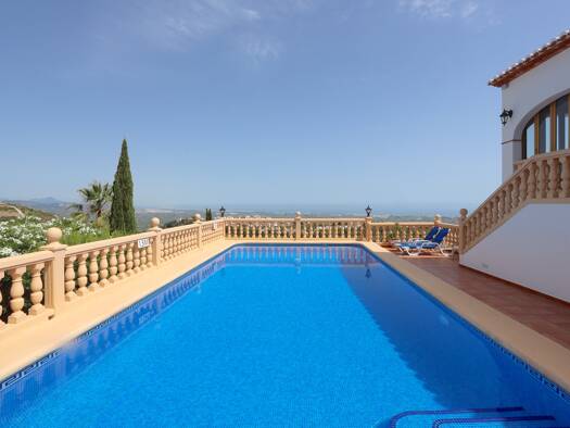 Gemütliche, komfortable Villa "Martin", 1 Stockwerk. Am Monte Pego, in erhöhter Lage, 8 km vom Meer entfernt. Privat: Naturgarten, nierenförmiges Schwimmbad (8 x 4 m). Parkplatz auf eigenem Grundstüc...