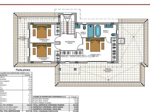 Freistehendes Einfamilienhaus mit 221 m² Wohnfläche (ca. 200 m² Nutzfläche), verfügt über 3 große Schlafzimmer, 2 Badezimmer, Küche, Wohnzimmer, Salon, eine Dachterrasse mit fantastischem Ausblick un...