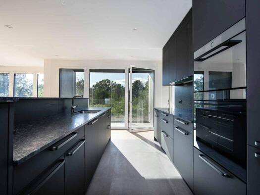 -Geräumige und helle Wohnräume, Parkettboden aus exotischem Massivholz. -Elegantes Wohnzimmer mit Kamin, direkter Zugang zur Sonnenterrasse. -Teilweise offene, voll ausgestattete Küche, Zugang zur Te...