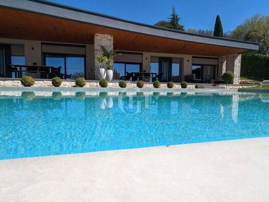 Wir bieten eine elegante Villa mit Panoramablick und reizvollen Seeblick zum Verkauf an, eingebettet in ein großzügiges Privatgrundstück mit Swimmingpool - ideal, um die Sommermonate in völliger Priv...