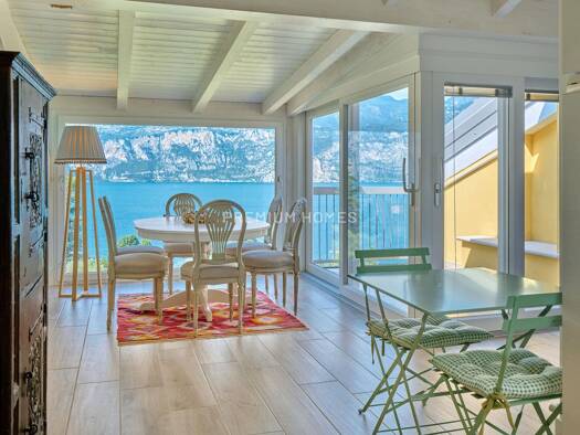 Dieses charmante Attico befindet sich in einer der begehrtesten Lagen von Malcesine und bietet einen spektakulären Seeblick, der sich bis zur Scaligerburg erstreckt. Die leicht erhöhte Hanglage, eing...