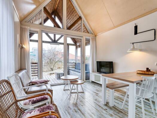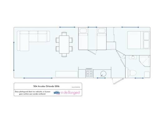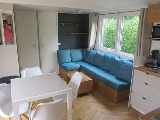 Das Arcabo Orlando ist ein sehr geräumiges Chalet, nicht weniger als 4,5 m breit! Dank des großen Fensters an der Seite des Chalets und der Schiebetüren an der Vorderseite kommt viel Tageslicht in da...